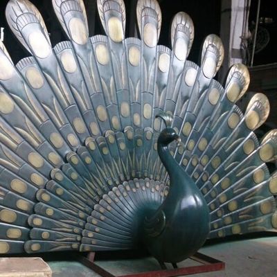 Bronze abstract wrought copper peacock sculpture with its tail spread Outdoor garden pool decoration